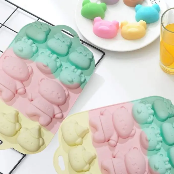 Diseño de Osos Temáticos: Molde con 11 cavidades individuales en forma de osos variados (osos simples, osos con moño y osos con gorro de cumpleaños), tal como se observa en las imágenes, ideal para fiestas, cumpleaños o regalos.Material de Alta Calidad: Fabricado en silicona duradera y flexible, apta para uso alimentario y segura para diversas manualidades.Amplio Rango de Temperatura: Soporta temperaturas extremas, desde -60°C hasta 260°C, lo que lo hace perfecto para usar en horno, microondas, congelador o refrigerador.Antiadherente y Fácil de Desmoldar: La flexibilidad de la silicona garantiza un desmolde sin esfuerzo, manteniendo la forma perfecta de tus chocolates, mini budines, jabones o velas.Fácil de Limpiar: Apto para lavavajillas, o simplemente lávalo a mano con agua y jabón, facilitando el mantenimiento.¡Ideal para crear chocolates, mini budines, gelatinas, velas, jabones y cualquier tipo de manualidad que puedas imaginar con un toque de ternura!